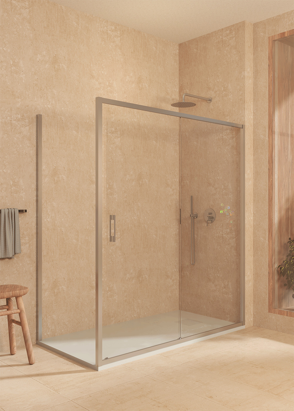 SOULHOME – SOULBATH | Mampara de ducha angular fijo + corredera + fijo lateral.