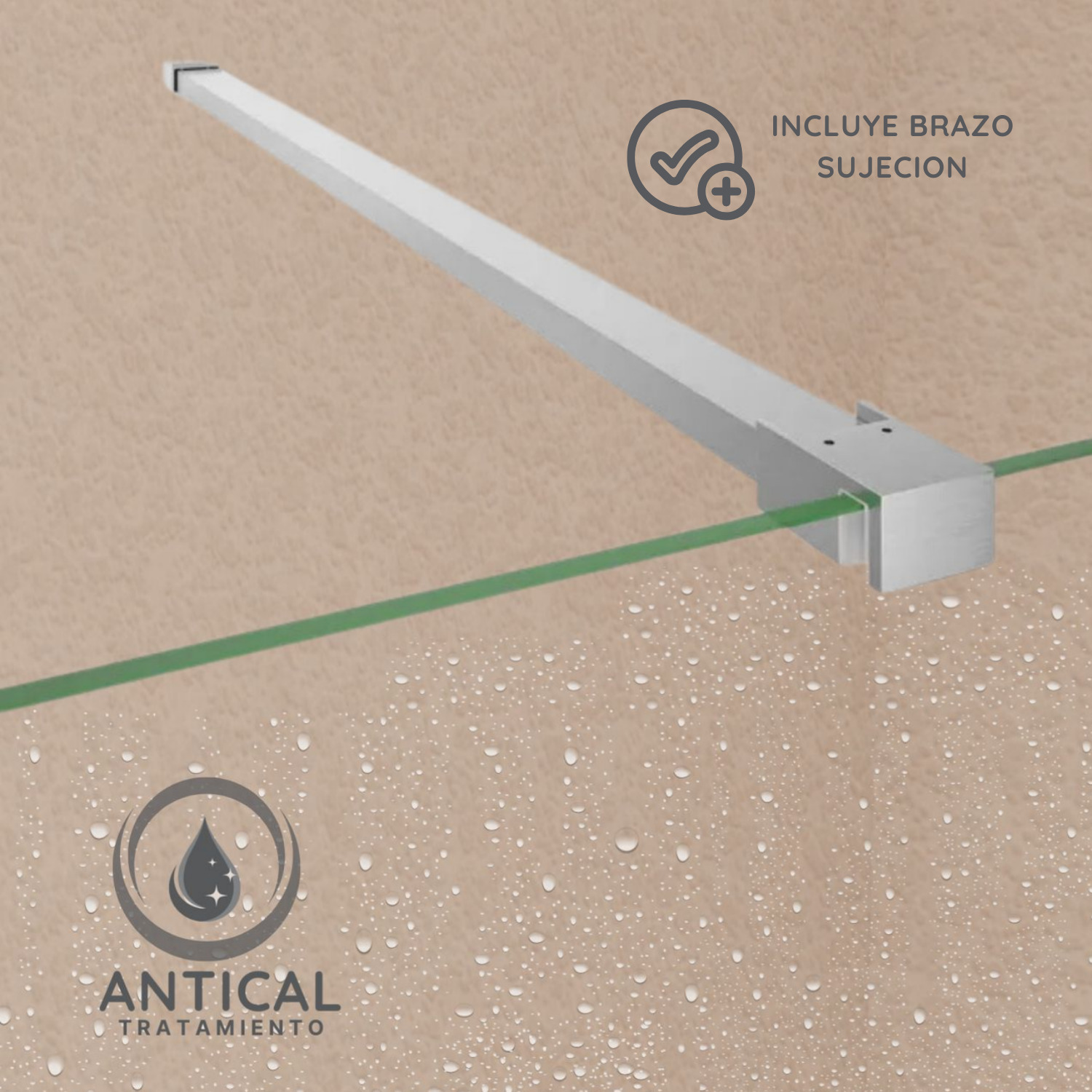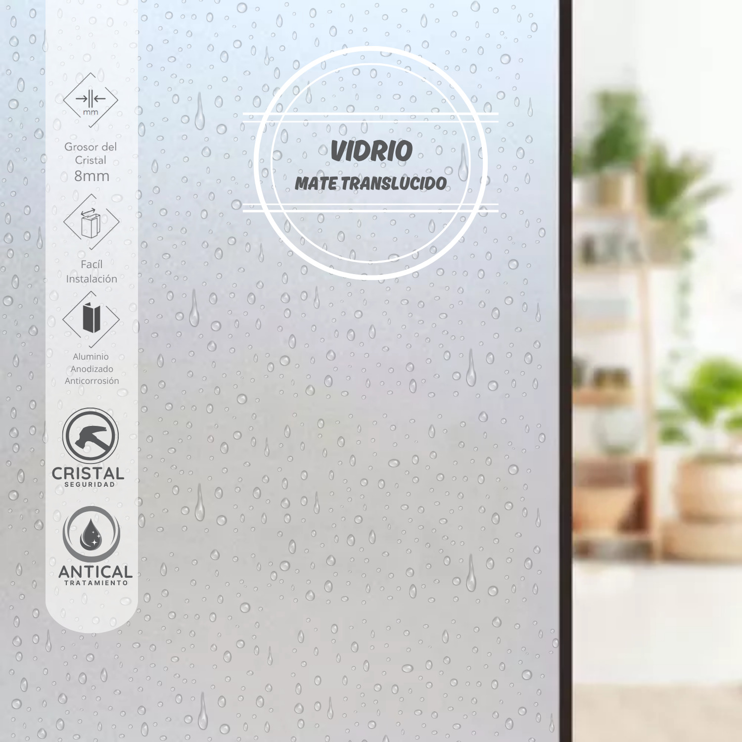 • Seguridad: Cristal de seguridad templado de 8 mm Mate Arenado con cierre magnético.